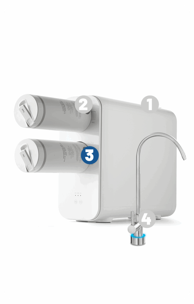 Consume menos agua gracias a la tecnología de bajo rechazo y evita el gasto en agua embotellada.